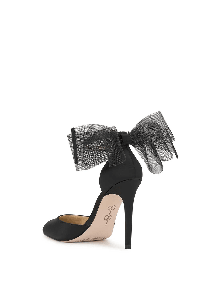 løft Din Fodtøjssamling Med jessica Simpson Phindies Pump I Sort. Denne Fantastiske Stiletto Er Designet Til At Gøre Indtryk, Med En Slank Spids Tå Og En Charmerende Ankelrem, Der Tilføjer Lige Den Rette Mængde Flair. Midtpunktet? En Drømmende Mesh Sløjfe Bagpå, Der Vender Hoveder Og Bringer En Legesyg Elegance Til Dit Look.
