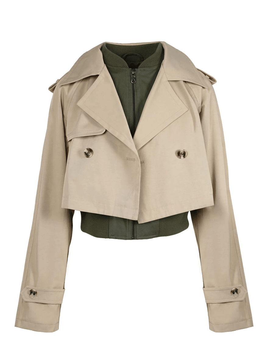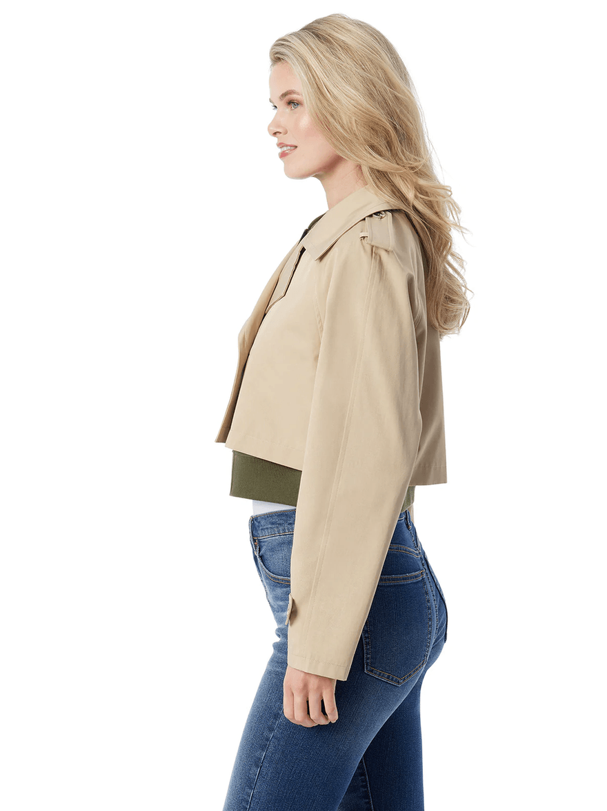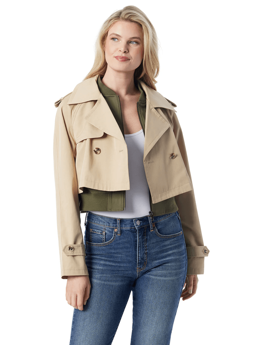 eleva La Tua Collezione Di Abbigliamento Esterno Con La giacca Bomber Trench Di Jessica Simpson In Khaki. Questa Giacca Elegante E Versatile Combina La Silhouette Classica Del Trench Con Un Tocco Moderno Da Bomber, Rendendola Un Must-have Per Chiunque Sia Attento Alla Moda.