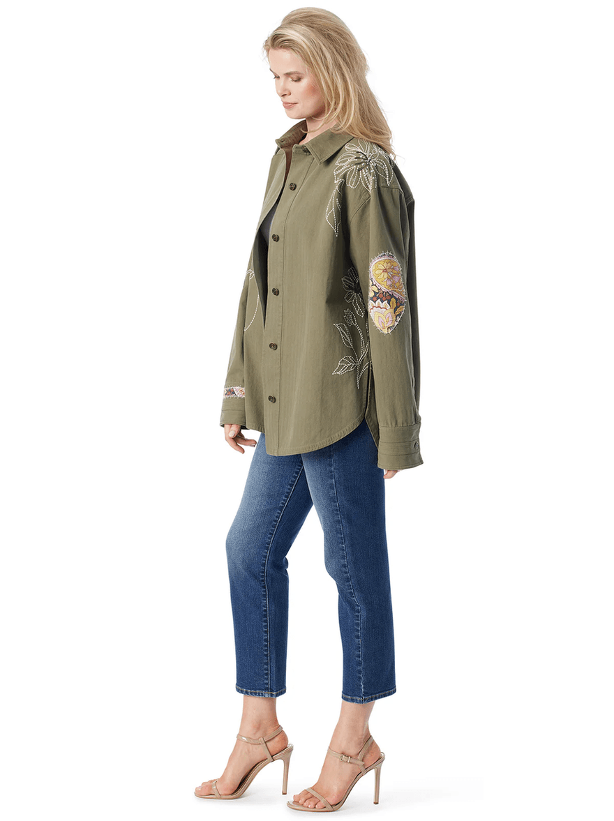 scopri La Giacca Shacket Decorata Di Jessica Simpson In Verde Bronzo