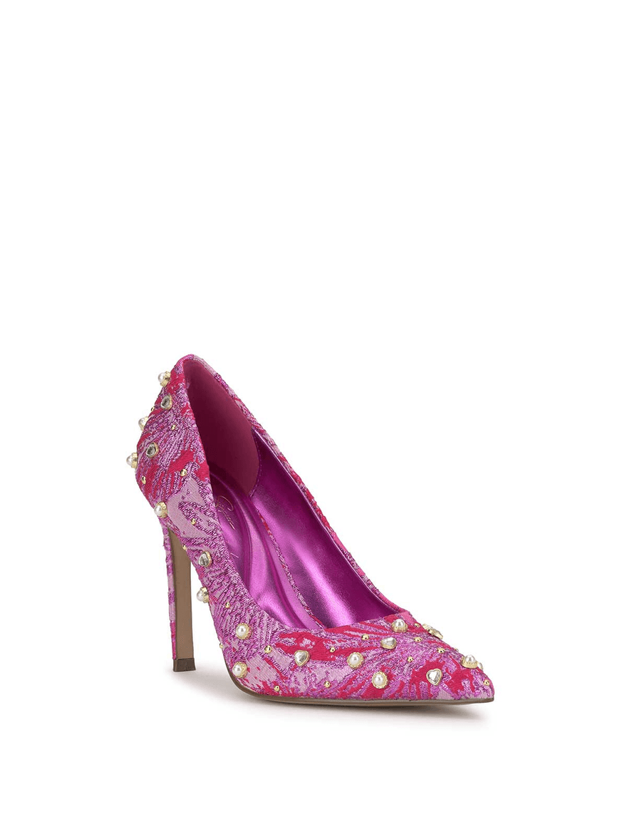il jessica Simpson Welica High Heel In Rosa Rosa Brillante Presenta Un'altezza Del Tacco Di 3,7 Pollici, Rendendolo Una Scelta Ideale Per Chi Cerca Di Aggiungere Un Po' Di Altezza Senza Sacrificare Il Comfort. Realizzato In Tessuto Di Alta Qualità E Importato Per Una Lavorazione Superiore, Questa Décolleté Unisce Stile E Durata.