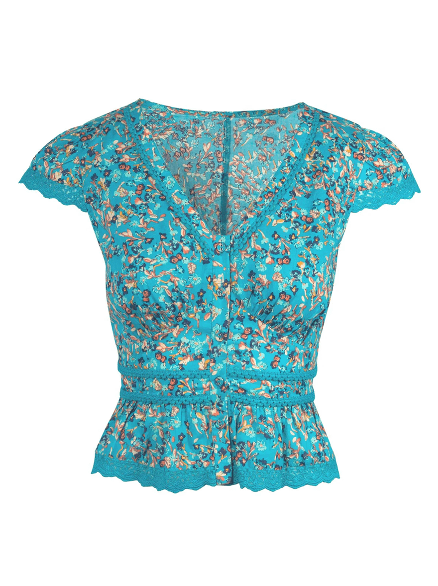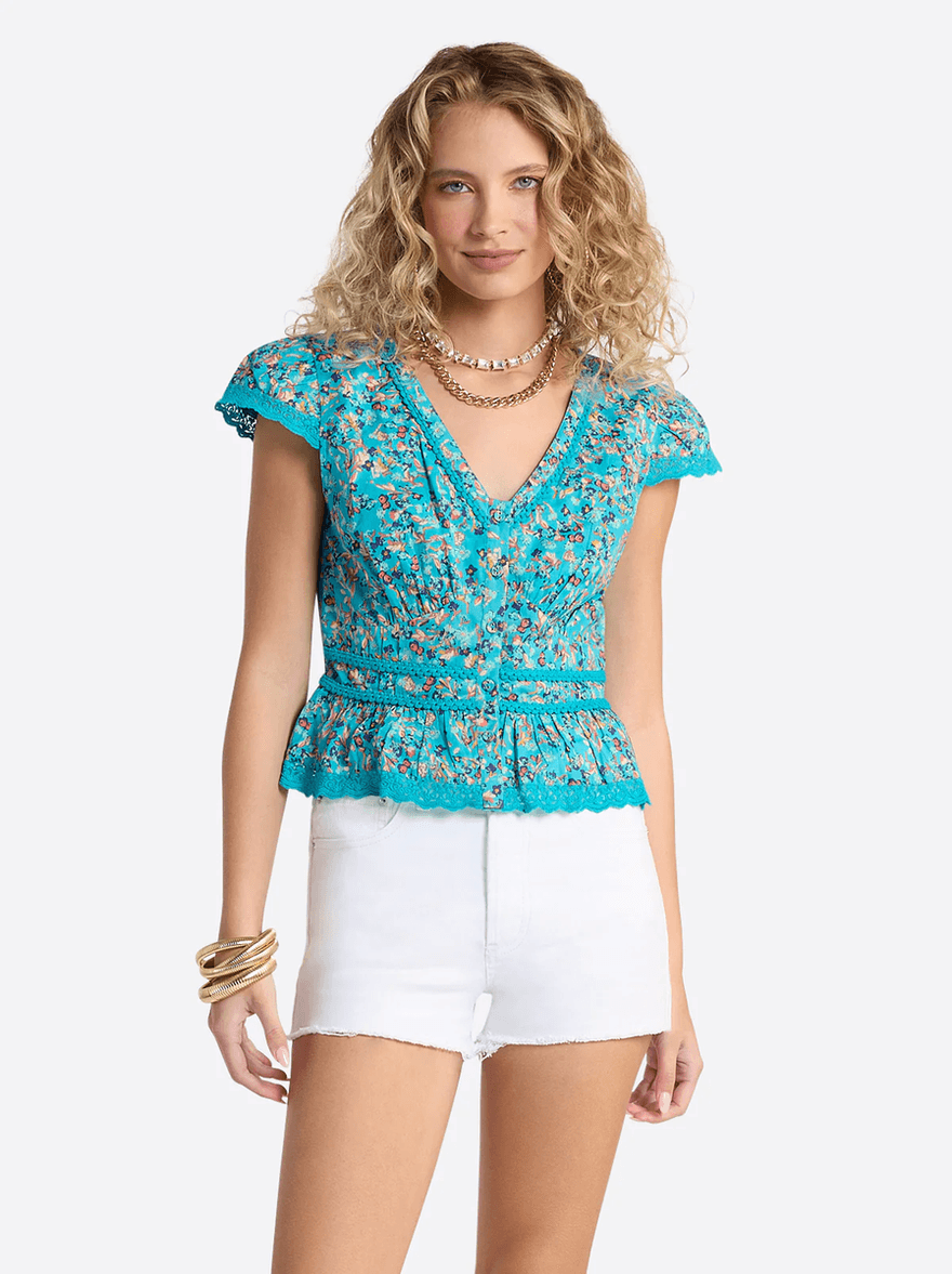 Jessica Simpson Alessia Blouse in Tile Blue Acrylic Ditsy