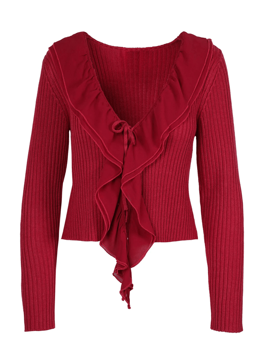 - Stylish Design: Features a trendy front tie closure and ribbed body and sleeves.