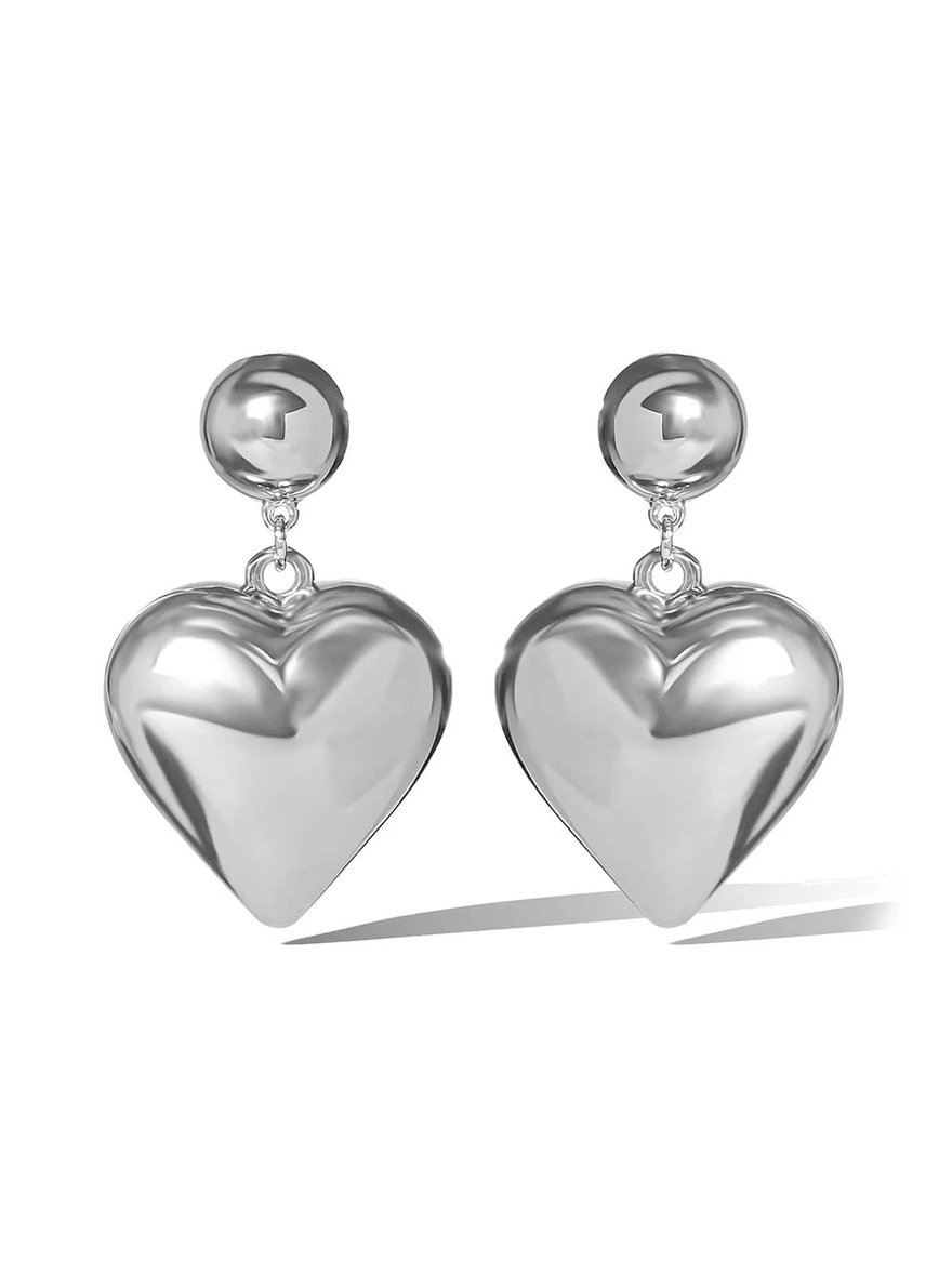 Jessica Simpson Bold Puff Heart Drop Earrings Silver