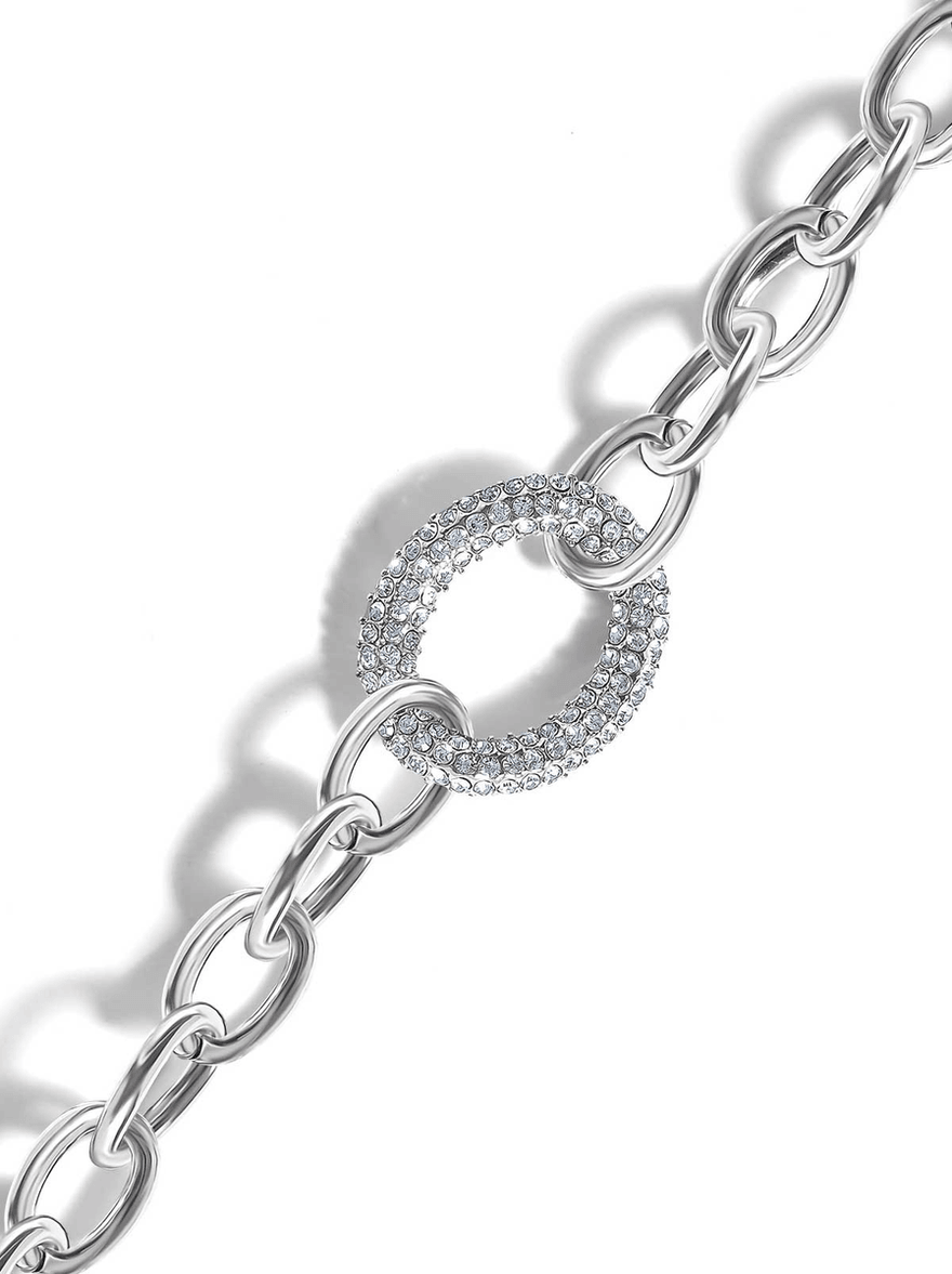 - Eye-Catching Design: Features bold silver-tone links and dazzling crystal details.