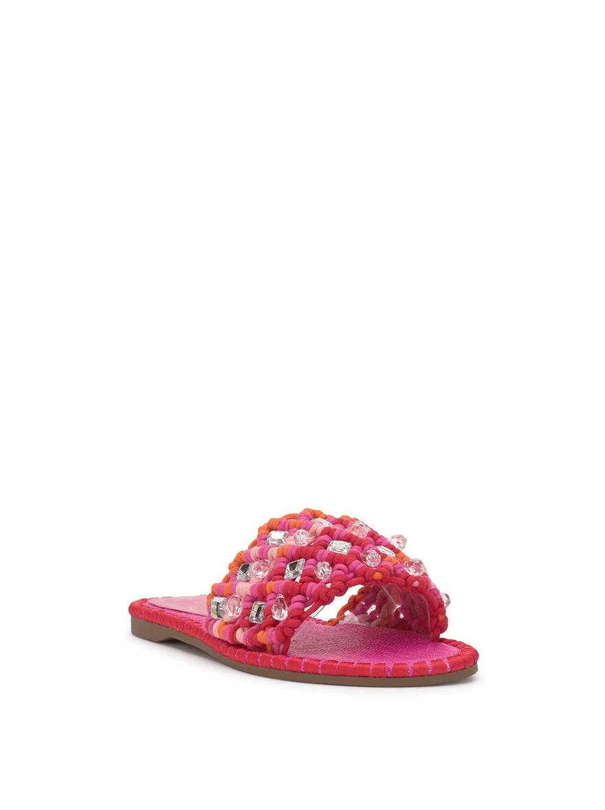 Elevate your summer wardrobe with the Jessica Simpson Brennara Flat Sandal in Bright Orchid. This stylish slide sandal effortlessly merges comfort and craftsmanship, making it a must-have for any fashion-forward individual. Its vibrant hue and unique design will turn heads wherever you go.