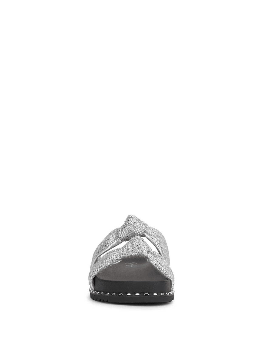Discover the Jessica Simpson Caralyna Flat Sandal in Silver Textured Silver