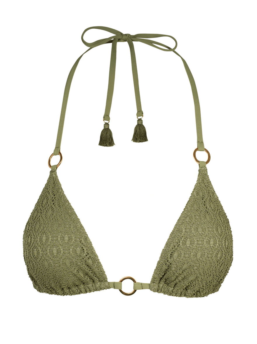 Discover the Jessica Simpson Crochet String Bikini Top in Olive