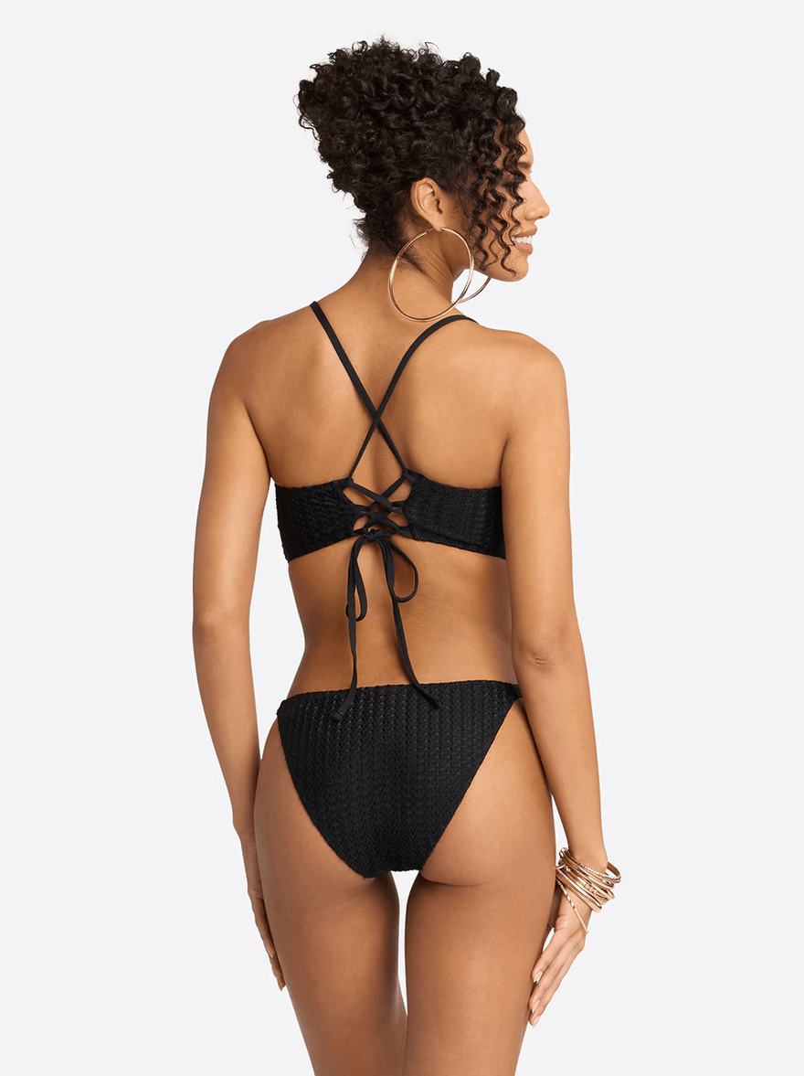 The Jessica Simpson Cropped Cami in Black features a clean and flirty silhouette that is sunshine-approved. The unique strappy details add a touch of flair, ensuring you stand out while soaking up the sun. Each swimwear piece is sold individually, allowing you to mix and match for your perfect beach ensemble.