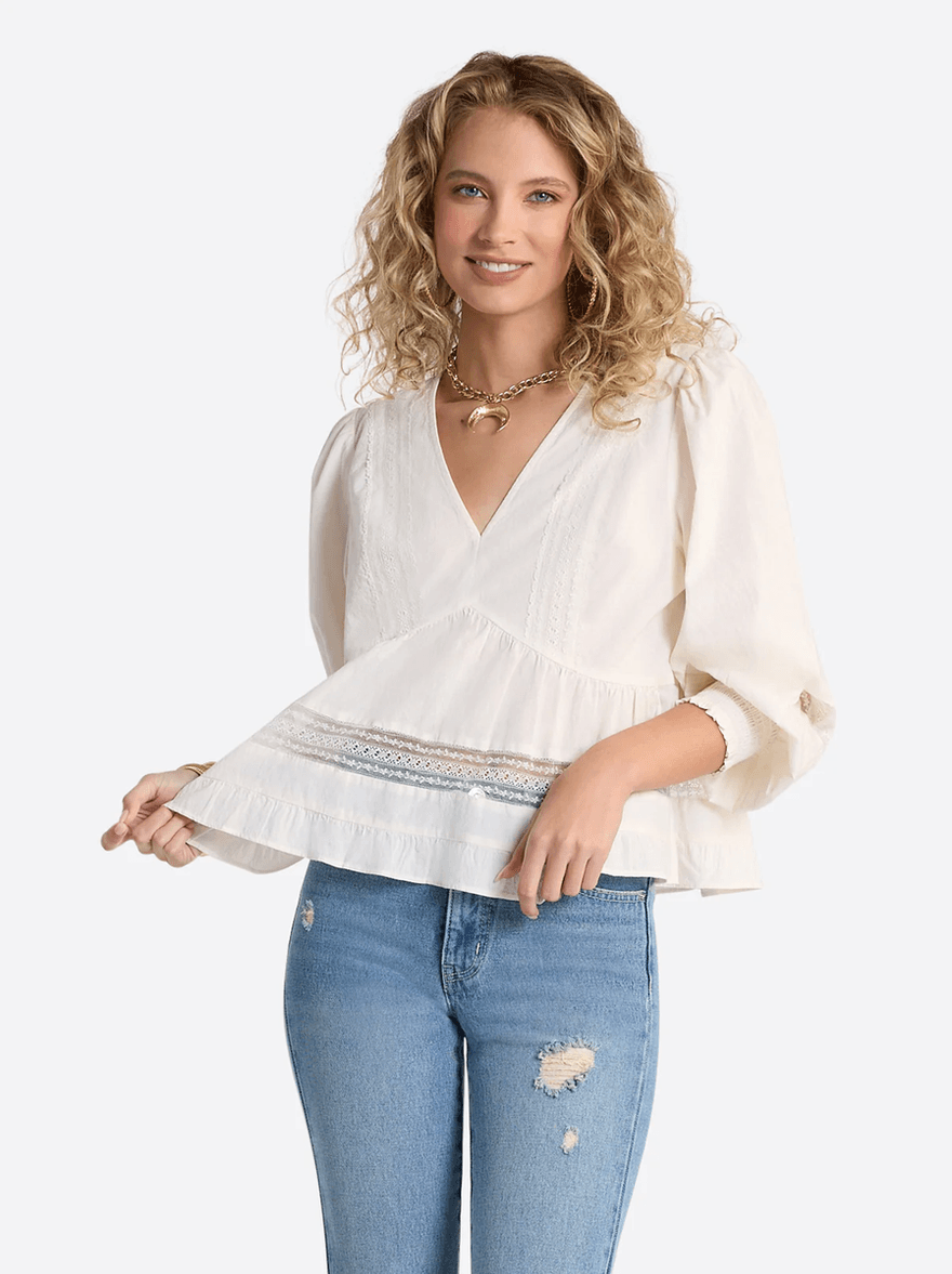 Jessica Simpson Elsie Babydoll Blouse in Buttercream