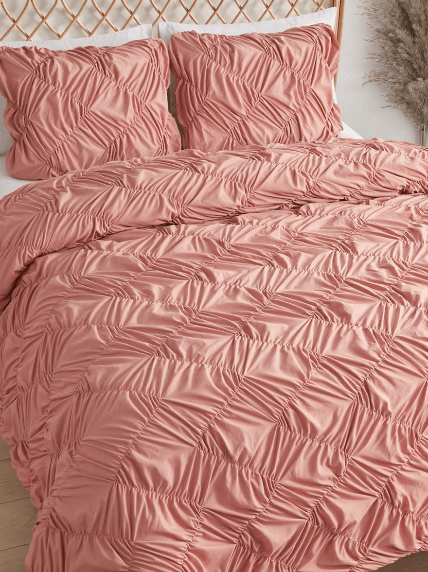 The Jessica Simpson Emmy Textured Comforter Set in Antique Rose is more than just a bedding set; it’s an invitation to relax and unwind in style. The gorgeous ruched texture creates a chic, layered look that complements any bedroom aesthetic. Whether you’re refreshing your master suite or adding a touch of elegance to a guest room, this comforter set is the ideal choice.