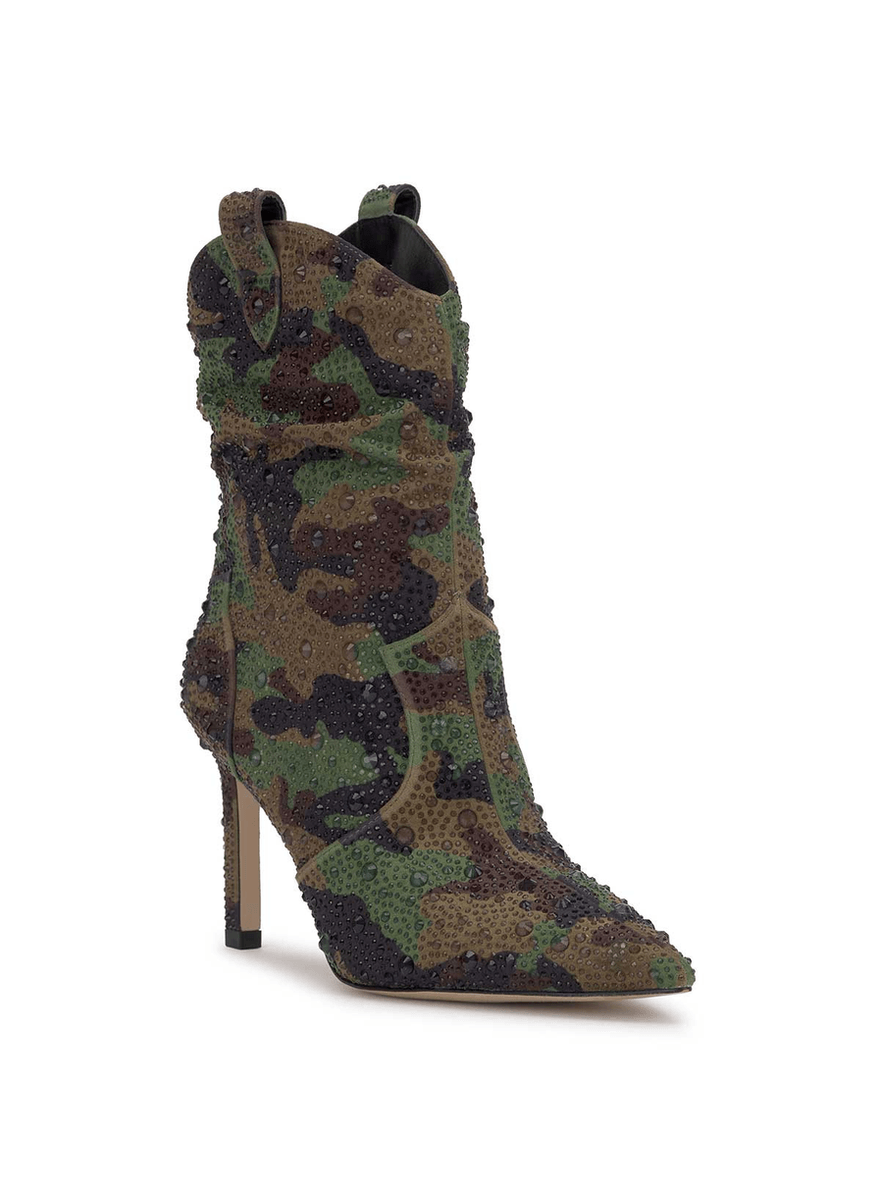 Make a statement with the Jessica Simpson Evgena High Heel Boot in Forest Camo. This stunning ankle boot effortlessly merges glam and western aesthetics, ensuring you turn heads wherever you go. With its pointed toe and sleek stiletto heel, this boot is the ultimate choice for those who want to showcase their unique style.
