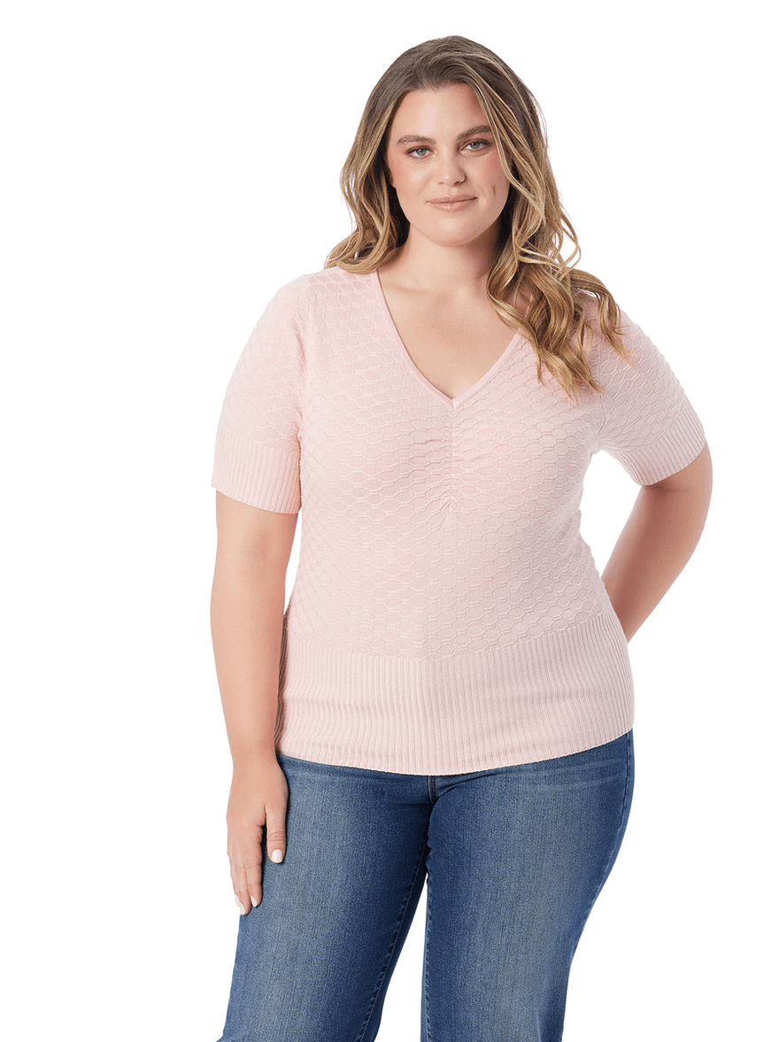 The Jessica Simpson Imani Top in Silver Pink is not just a top; it's a statement piece. Its elegant v-neckline and short sleeves make it ideal for both casual outings and dressier events. Pair it with your favorite jeans for a laid-back look or dress it up with a skirt for a night out. The beautiful silver pink hue adds a touch of sophistication, ensuring you stand out in any crowd.