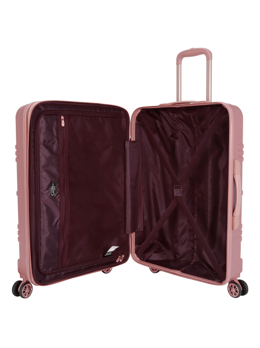 The Jessica Simpson Jewel Plaid Luggage Collection in Rose Gold is not just a suitcase; it's a statement. Available in three sizes—28", 24", and 20"—this collection caters to every travel need, whether it's a weekend getaway or an extended vacation. The stunning rose gold finish adds a touch of glamour, making it easy to spot on the luggage carousel.