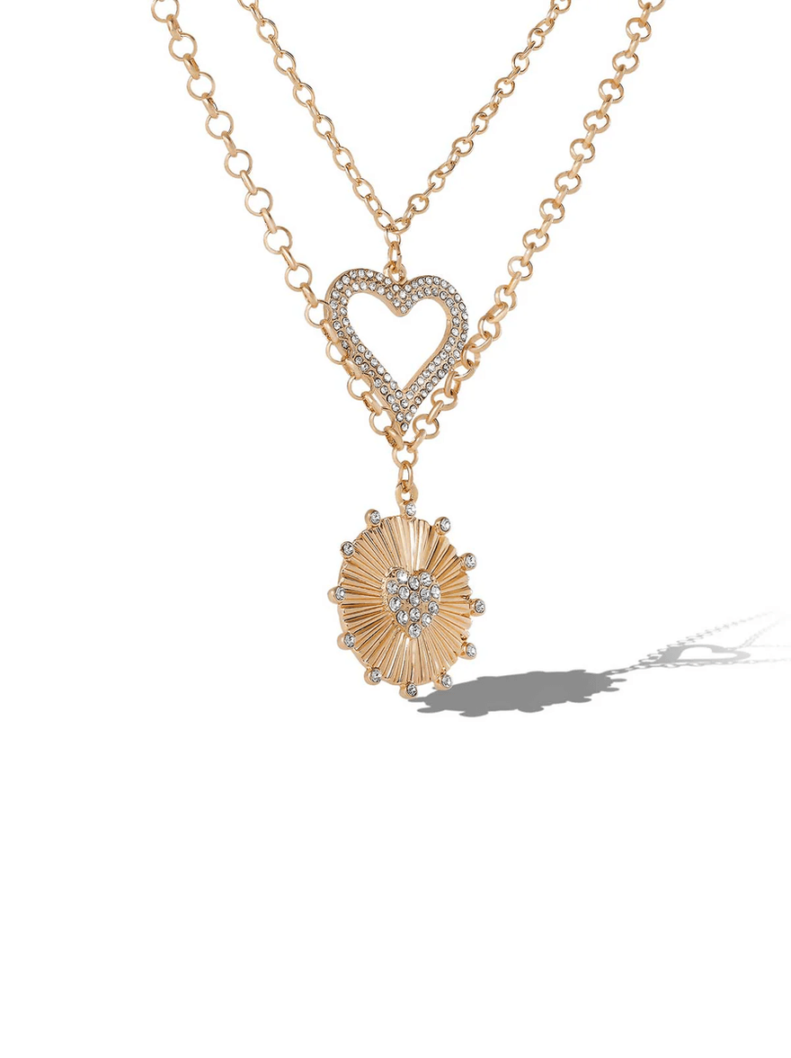 Jessica Simpson Layered Heart & Sunburst Pendant Necklace Set Gold