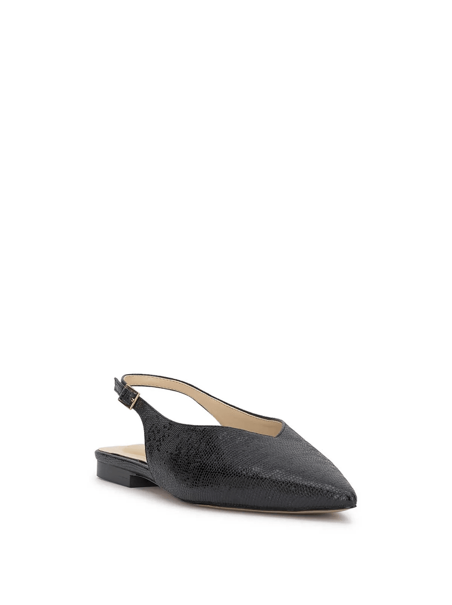 Elevate your everyday wardrobe with the Jessica Simpson Mezzah Flat in Black. This chic pointed-toe slingback flat is designed to add a fierce and fashionable flair to any outfit. Perfect for those who love to make a statement while enjoying comfort.