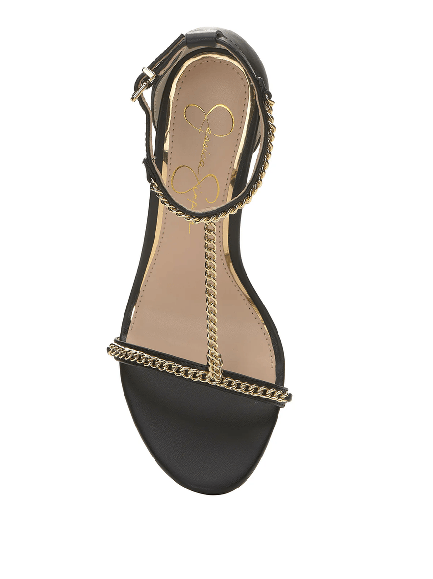Elevate your footwear collection with the Jessica Simpson Qiven High Heel in Black. This stunning t-strap stiletto features a chic chain detail, making it the perfect accessory for any occasion. With a heel height of 3.7 inches, it blends elegance with comfort effortlessly.