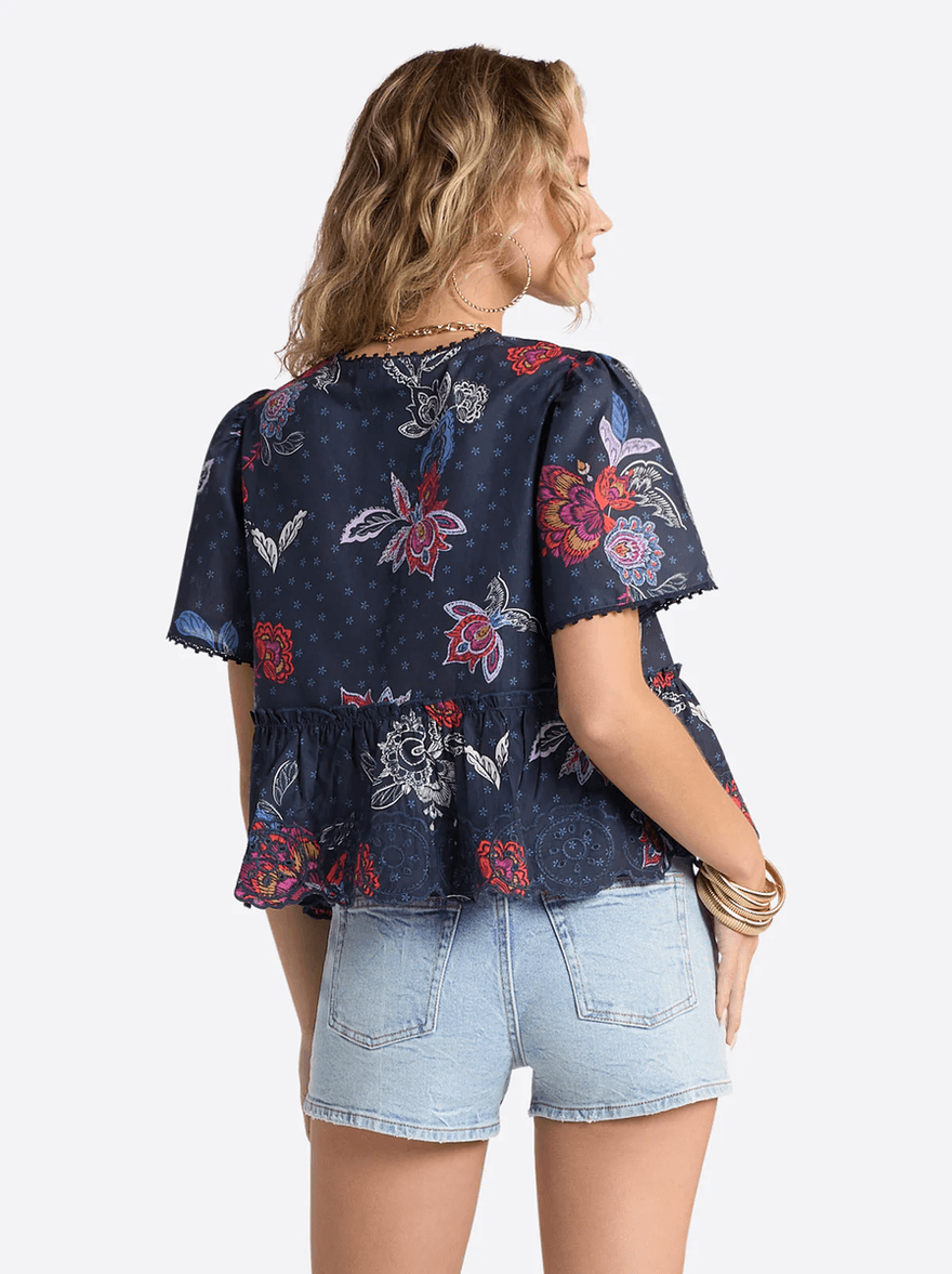 Don't miss out on the opportunity to own the Jessica Simpson Raquelle Blouse in Polar Night Colorful Rio. Add it to your cart today and experience the perfect blend of style and comfort!