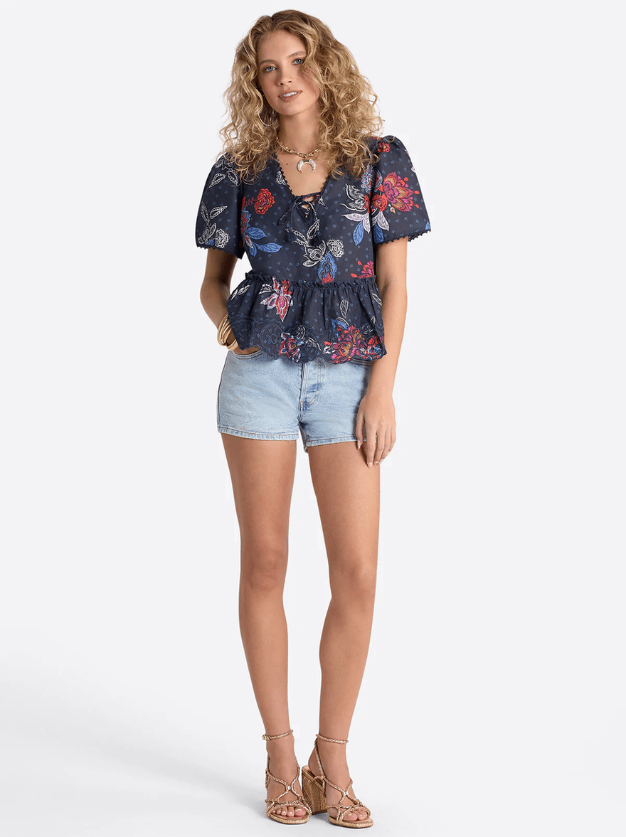Jessica Simpson Raquelle Blouse in Polar Night Colorful Rio