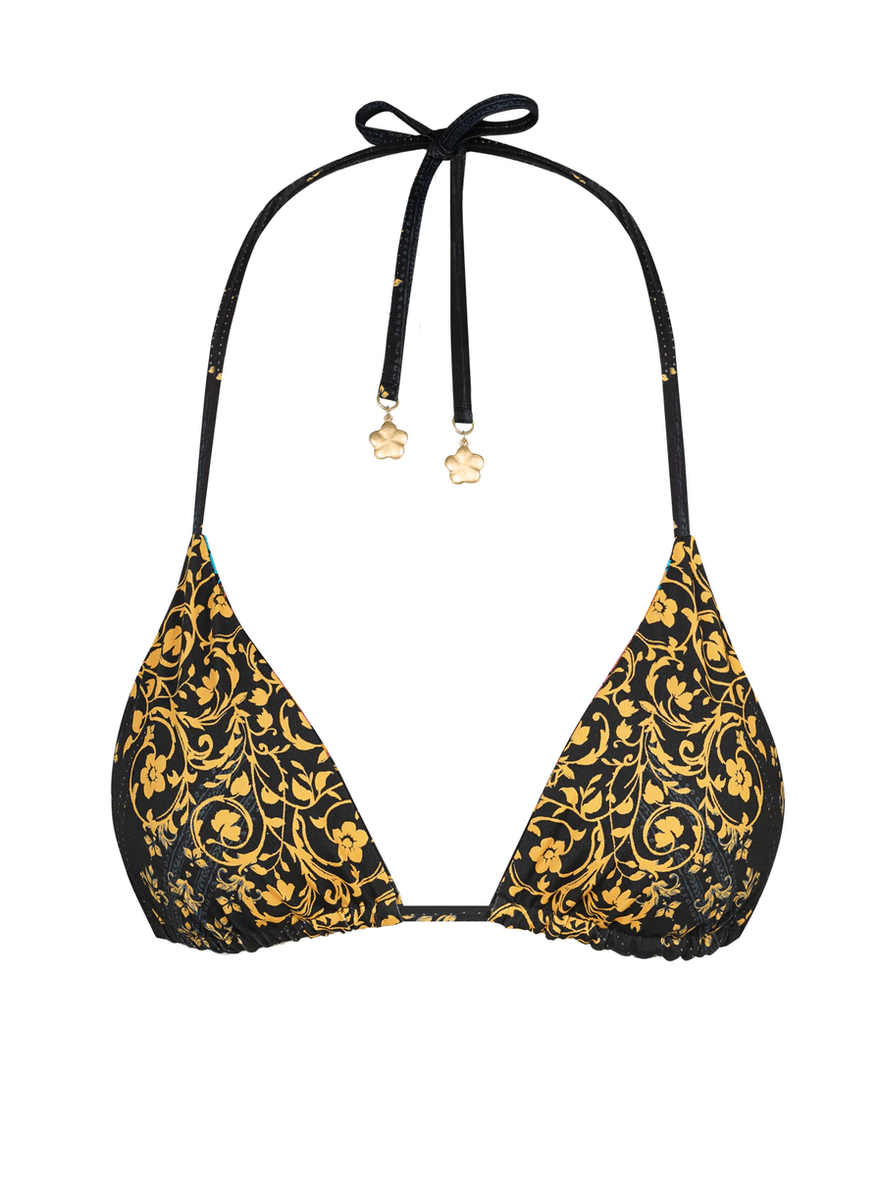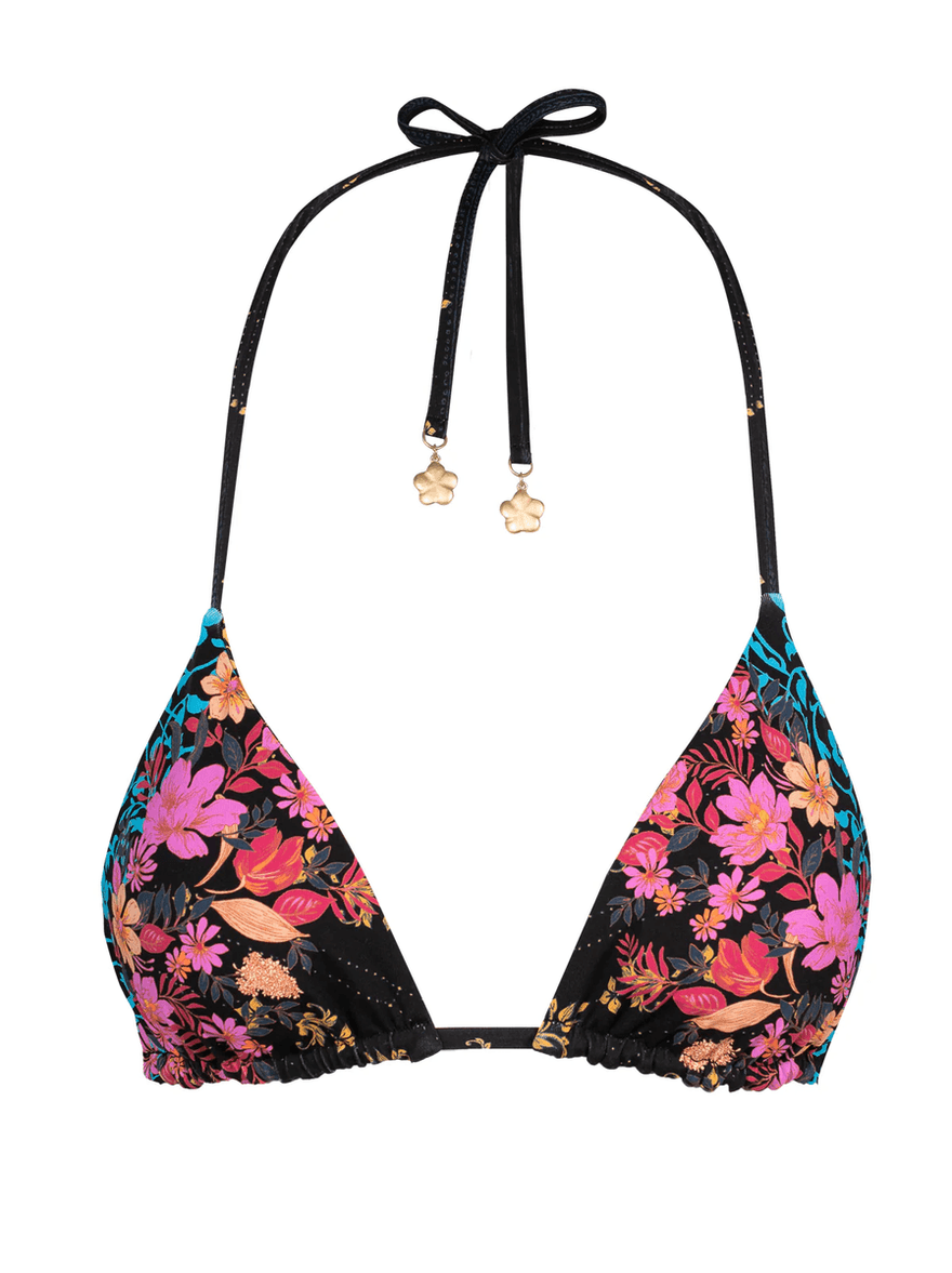 The Jessica Simpson Reversible Triangle Bikini Top in Swipe Right is designed for the fashion-forward swimmer. With its classic triangle silhouette, this bikini top ensures a flattering fit while you enjoy the sun. Whether you're going for a bold floral look or a more understated elegance, this swim top adapts to your mood and style.