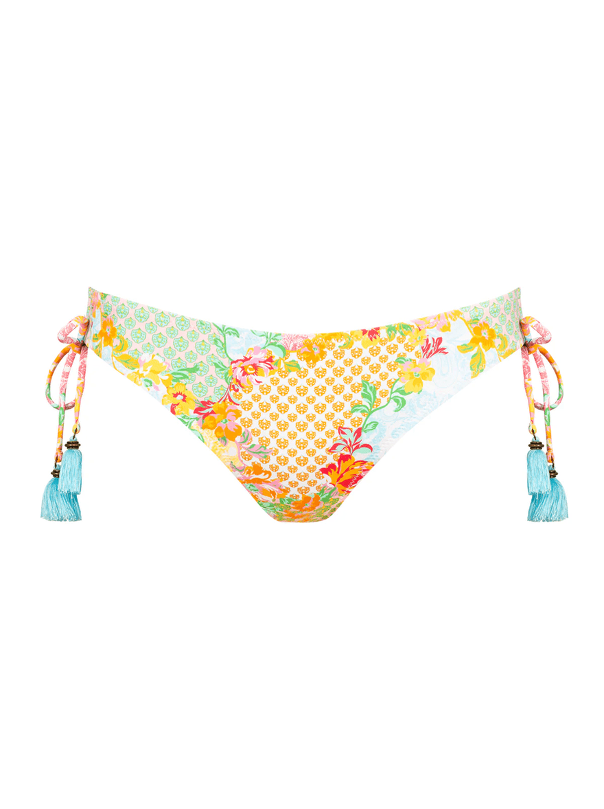 Get ready to turn heads this summer with the Jessica Simpson Side Ruched Hipster in Scene Stealer. These vibrant swim bottoms feature a playful floral print that embodies the essence of sunny days and beach vibes. With adjustable side ties adorned with charming tassels, they add a fun and flirty touch to your swimwear collection.