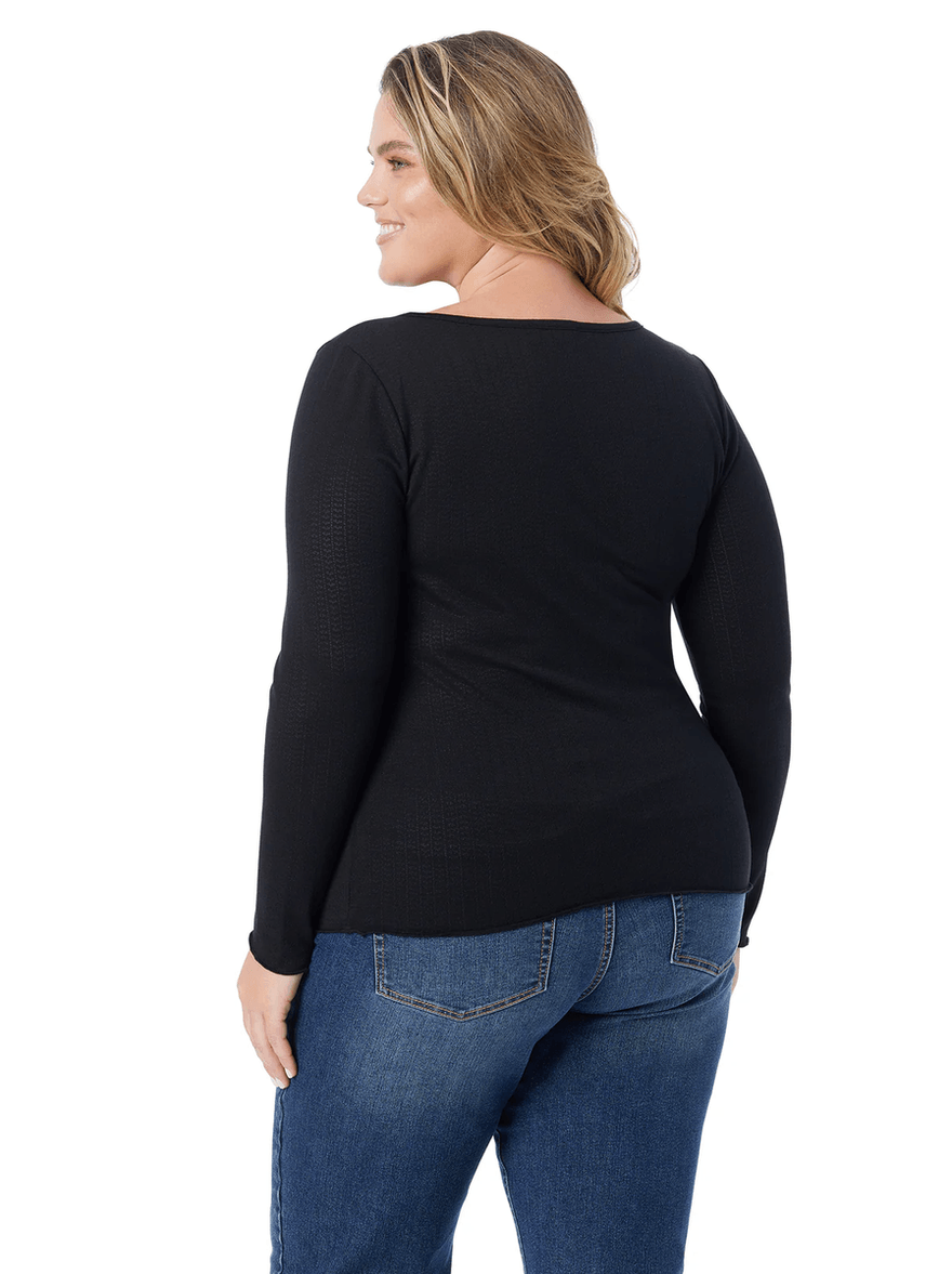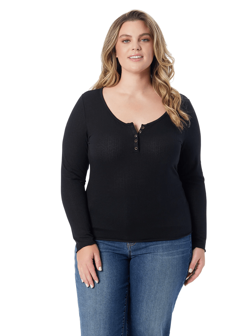 Discover the Jessica Simpson Tahani Henley Top in Anthracite