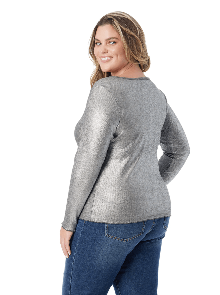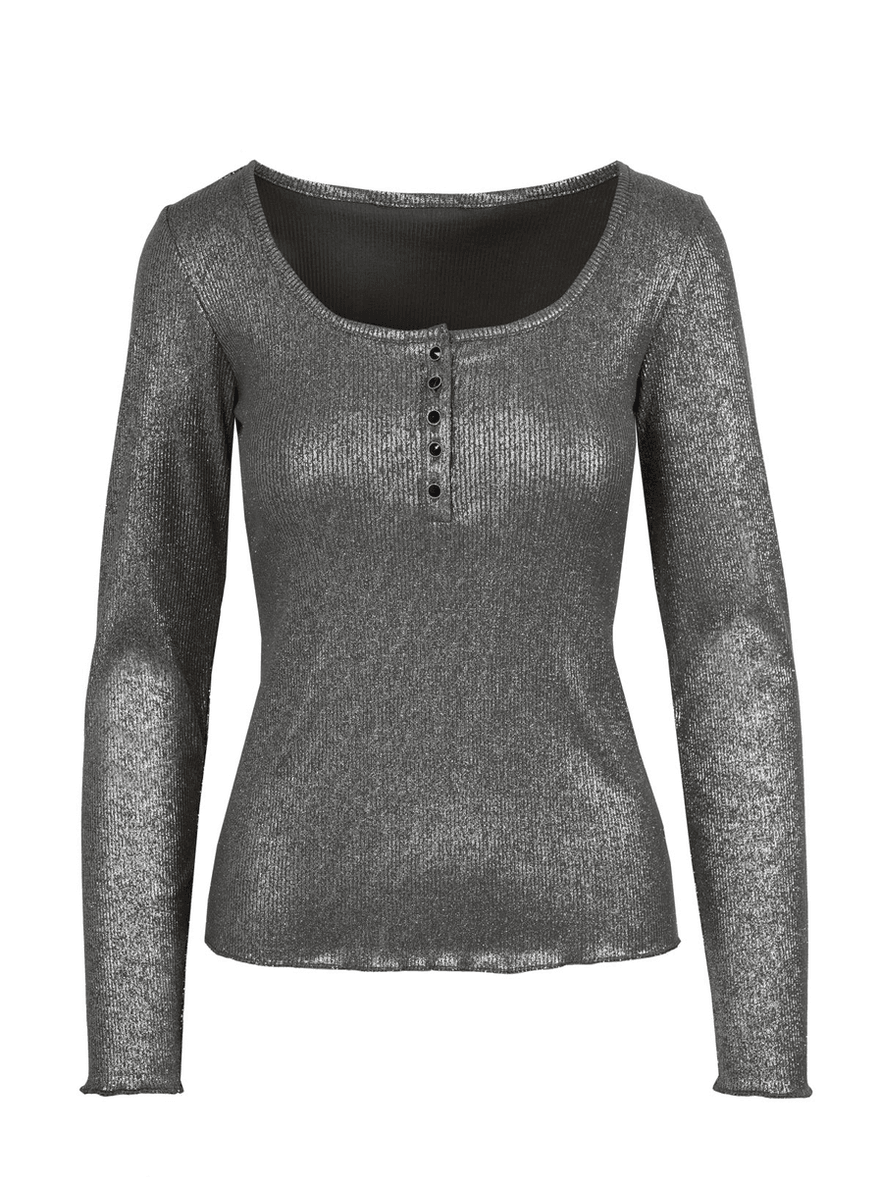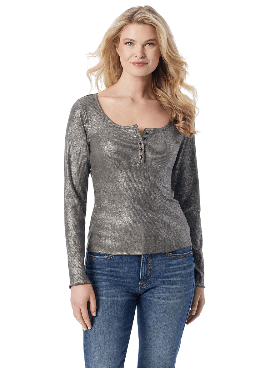 Discover the Jessica Simpson Tahani Henley Top in Silver Grey