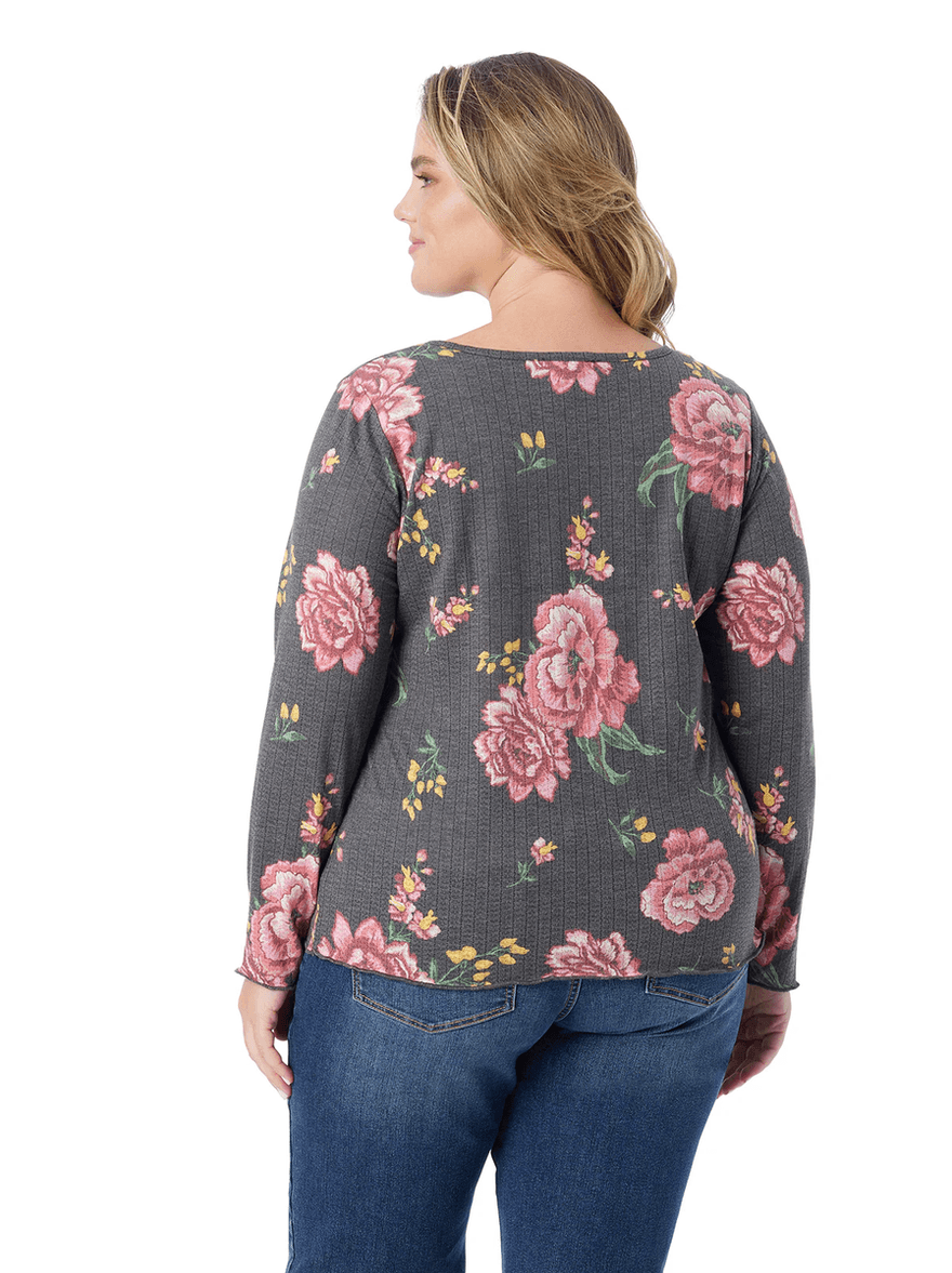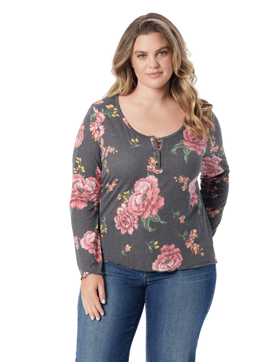 Discover the Jessica Simpson Tahani Henley Top in Sketchy Roses