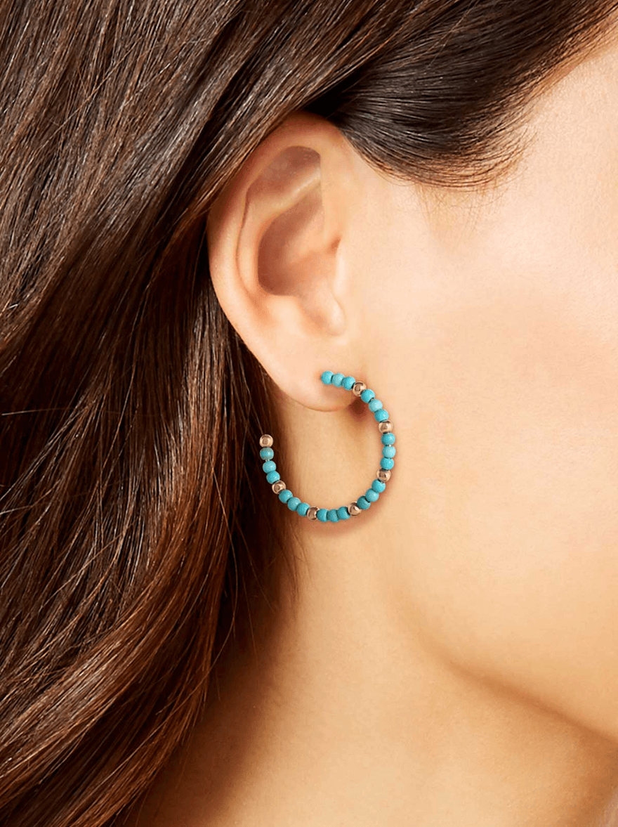 Elevate Your Style with Jessica Simpson Turquoise Bead Hoop Earrings in Gold