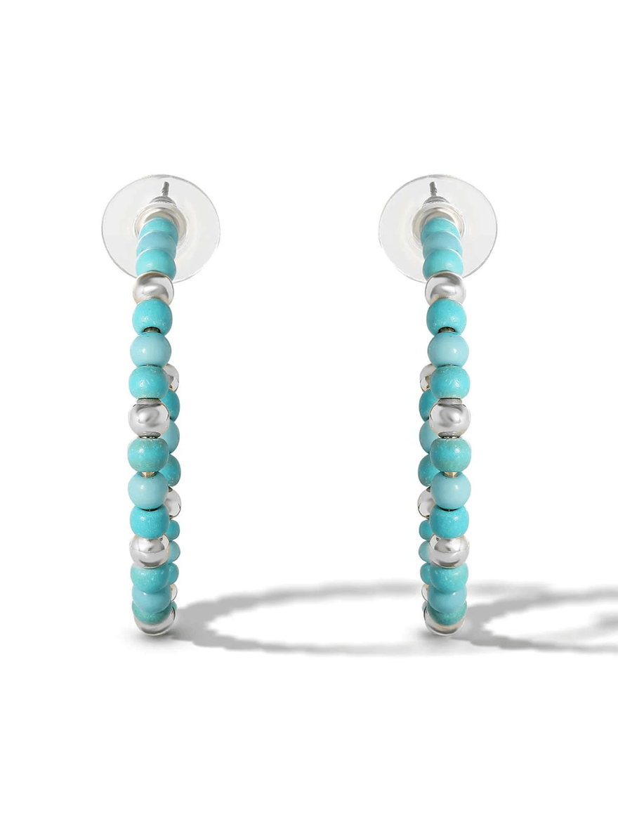 Elevate Your Style with Jessica Simpson Turquoise Bead Hoop Earrings in Silver