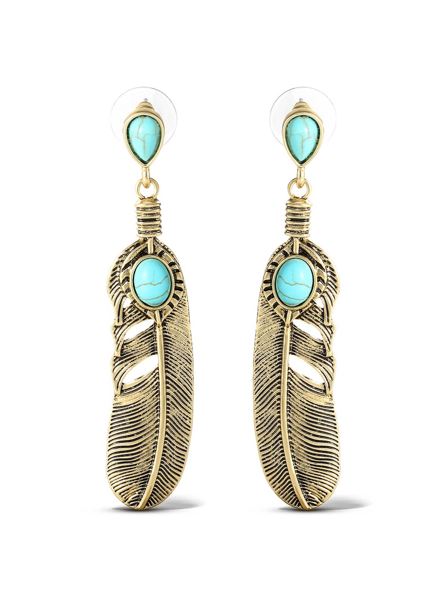 Discover the Jessica Simpson Turquoise Stone Feather Drop Earrings in Gold