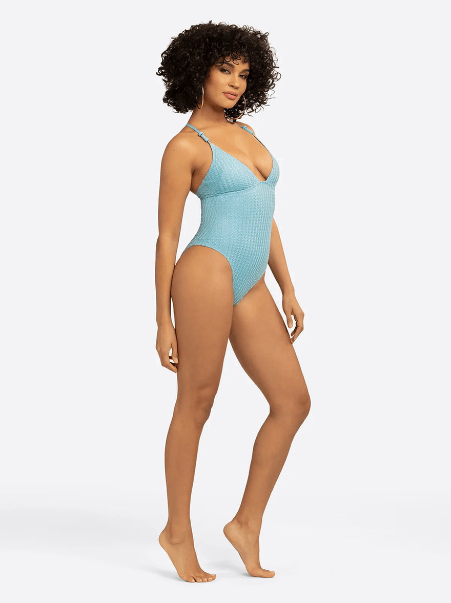 Effortlessly Chic: Jessica Simpson Twisted Jacquard Classic One Piece in Blue Retro