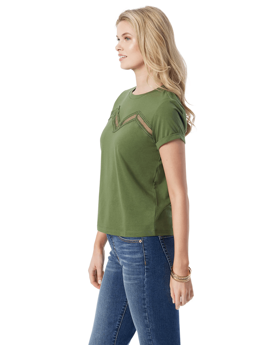 Discover the Effortless Style of the Jessica Simpson Valeriya Tee in Bronze Green