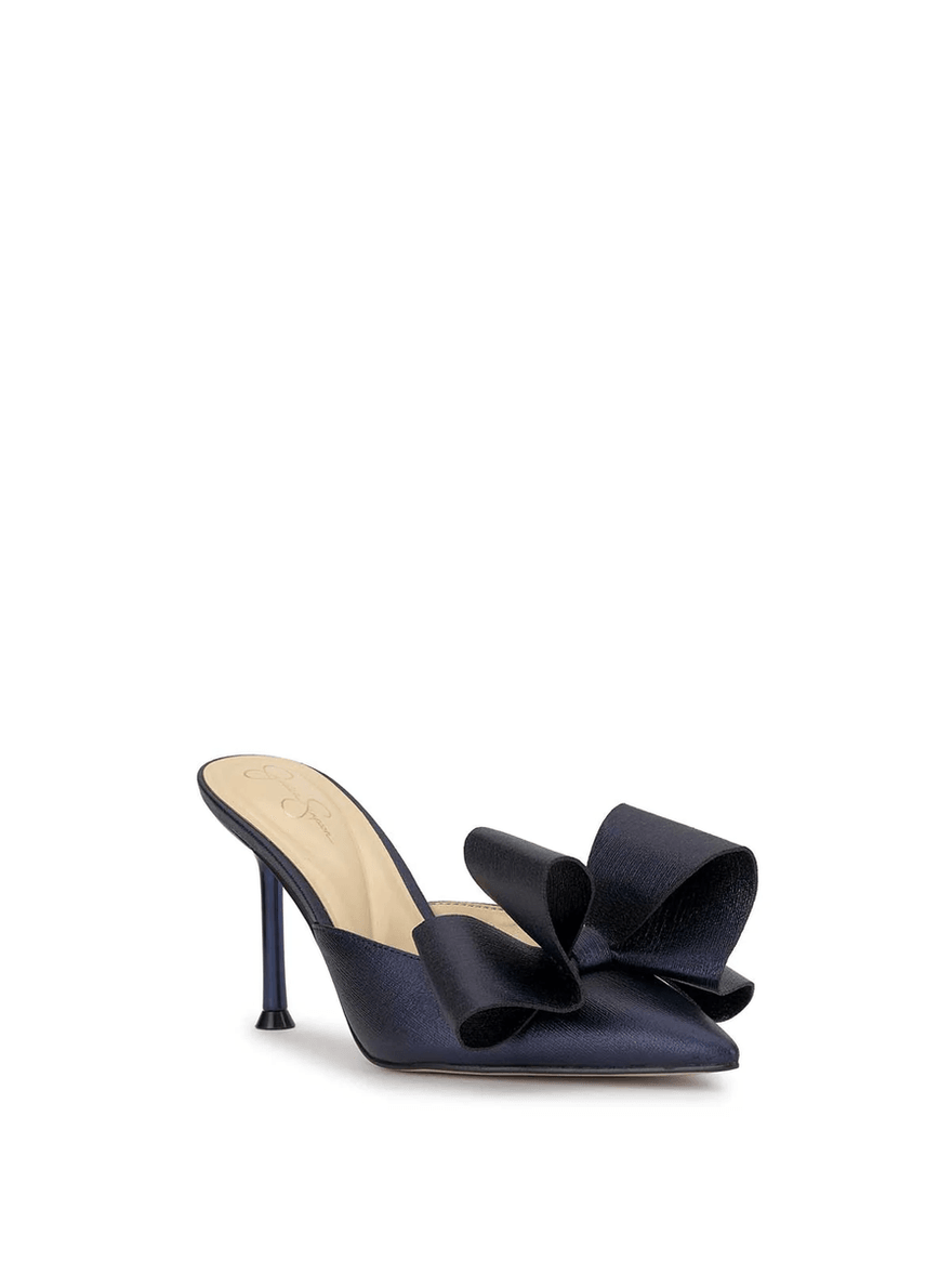Elevate your style with the Jessica Simpson Valrin High Heel in Indigo. This chic mule combines sophistication and playful charm, making it the perfect addition to your wardrobe. Featuring a stunning oversized bow, this high heel ensures you turn heads at every event.