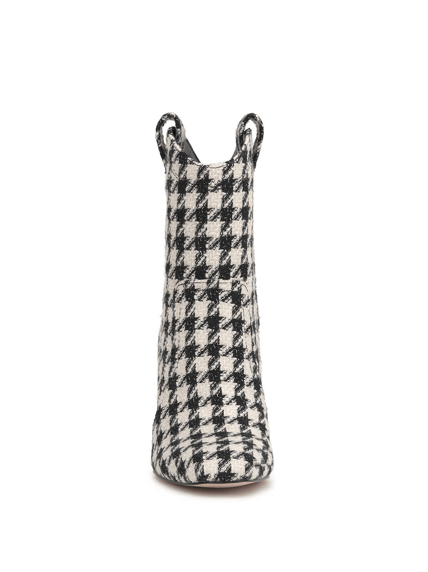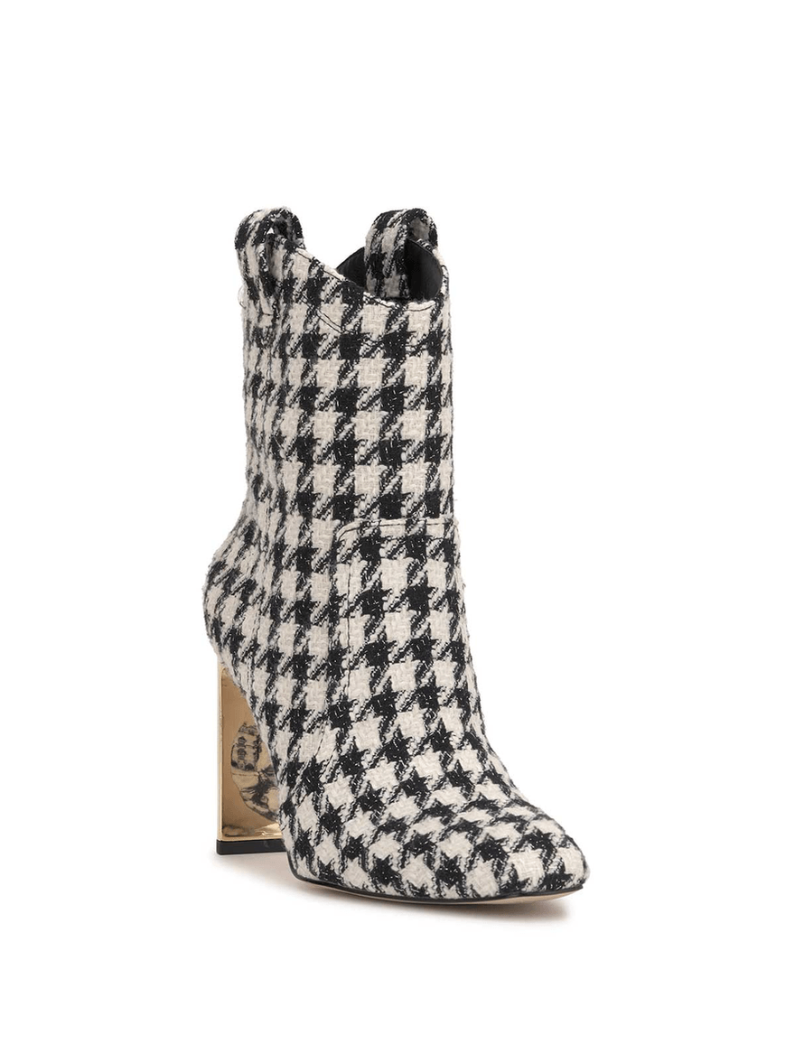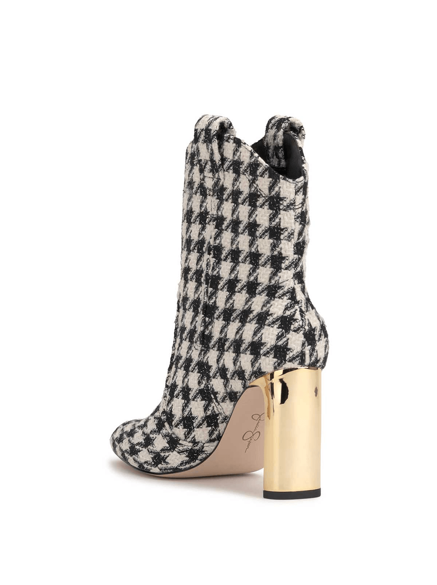 Elevate Your Style with the Jessica Simpson Xovira Heeled Bootie in Houndstooth