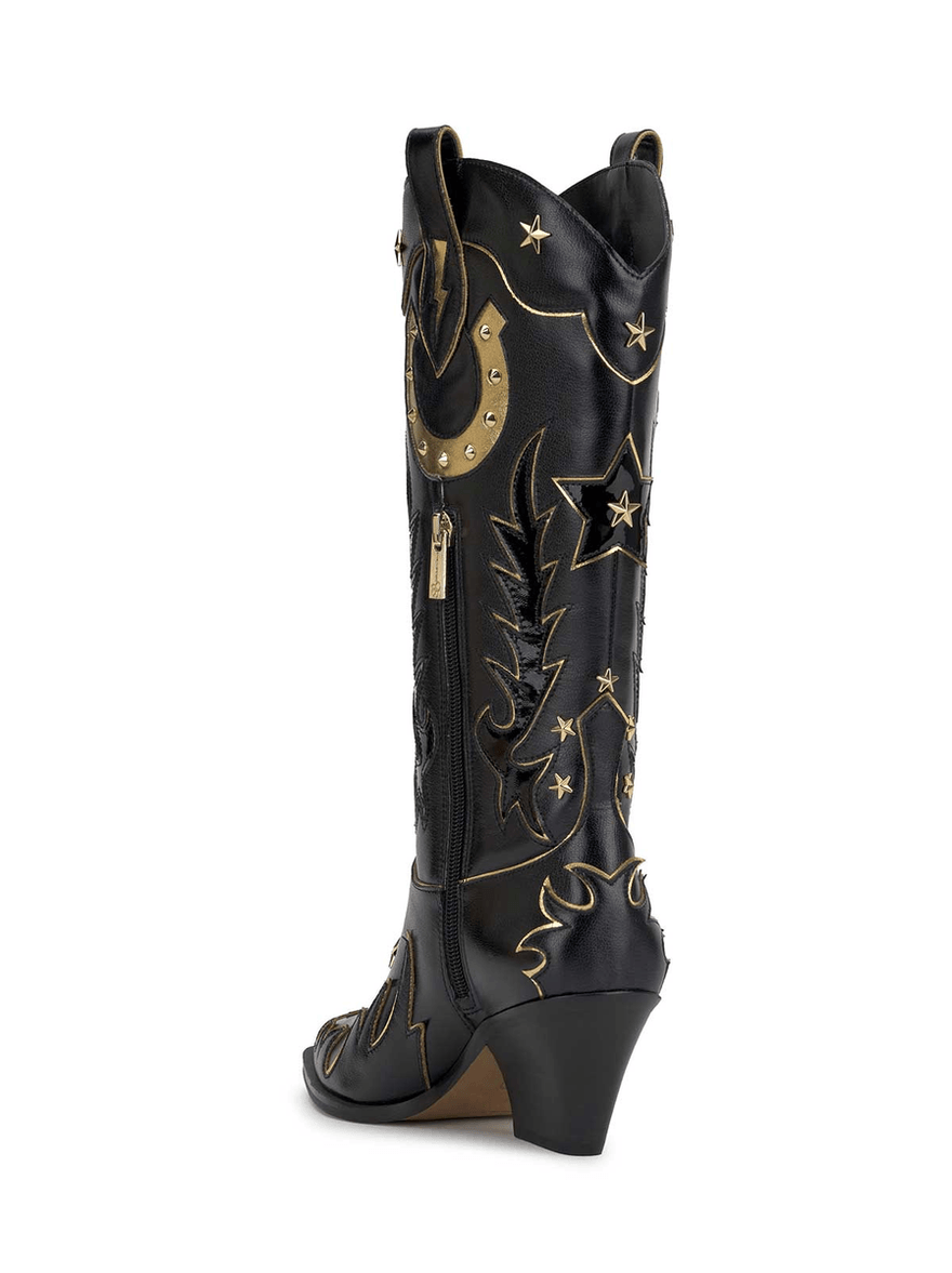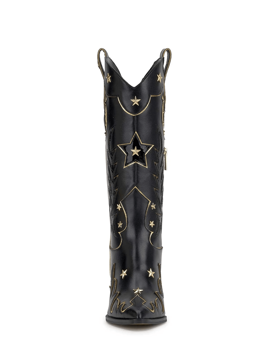 Make a striking impression with the Jessica Simpson Zembitti Boot in Black. This western-inspired cowboy boot combines timeless style with contemporary flair, perfect for the modern cowgirl.