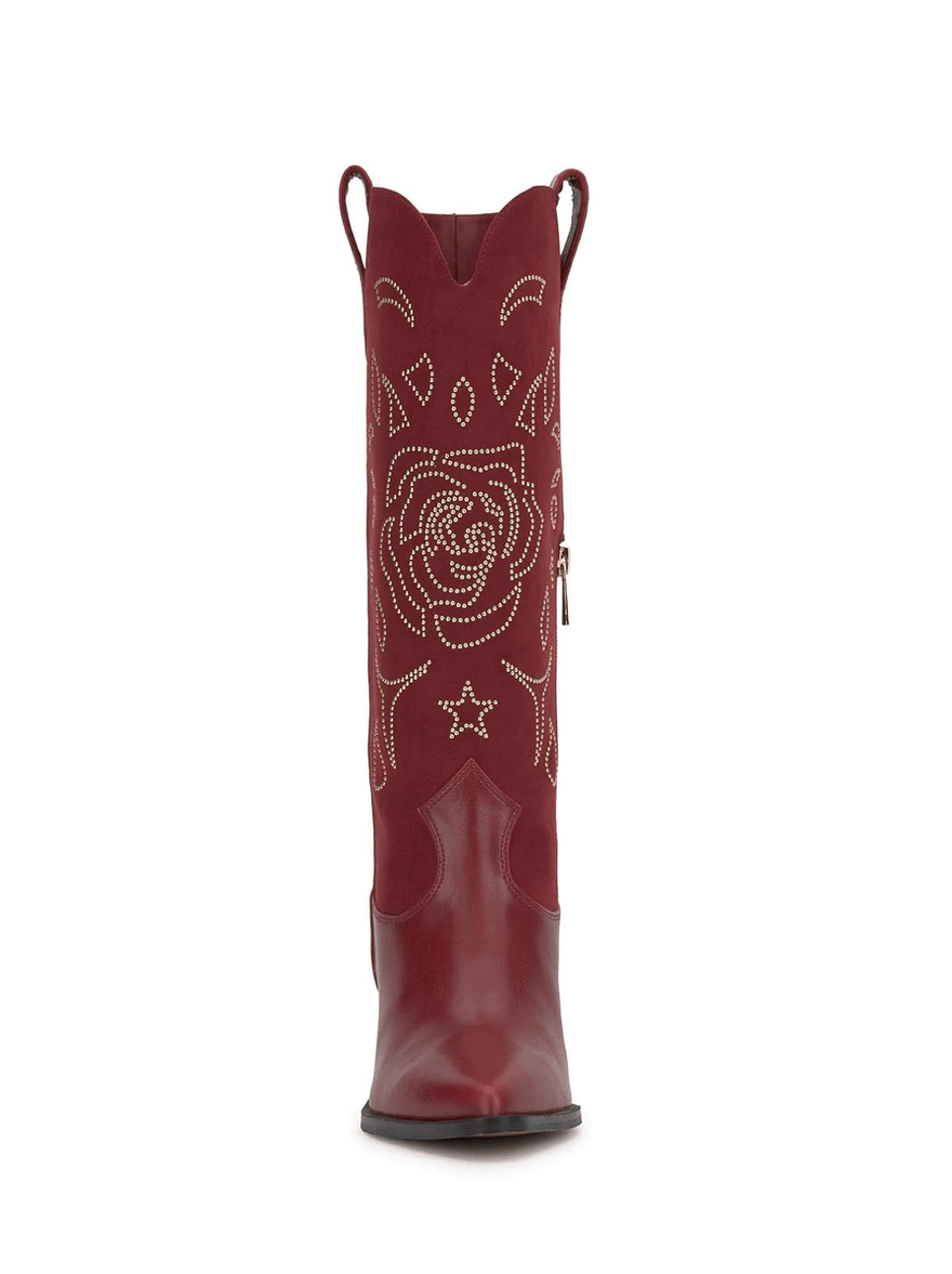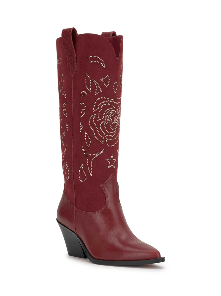 Elevate your wardrobe with the Jessica Simpson Zodra Boot in Chili Pepper. This eye-catching cowboy-inspired boot combines rugged charm with a touch of femininity, making it a must-have for any fashion-forward individual.